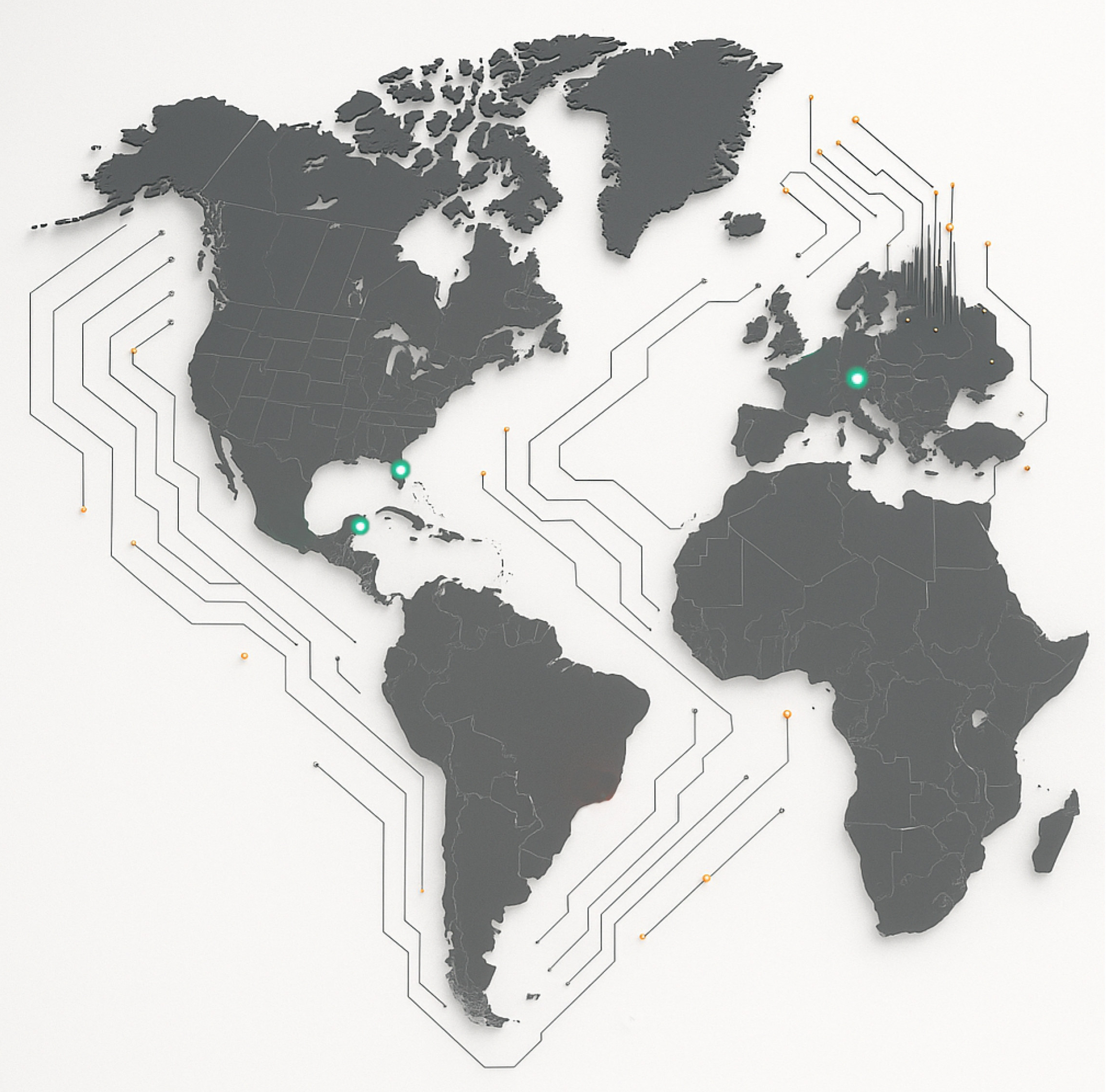 Somos una empresa internacional con sede en Weston, Florida, EE. UU. Contamos con oficinas en Cancún, México, y Múnich, Alemania. Ofrecemos servicios de representación y desarrollo de marca para Latinoamérica y otros mercados internacionales.
